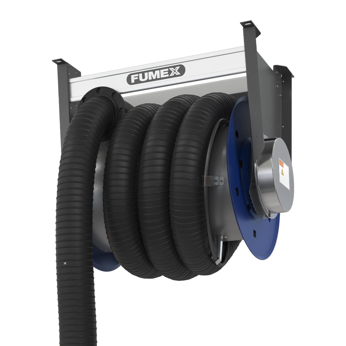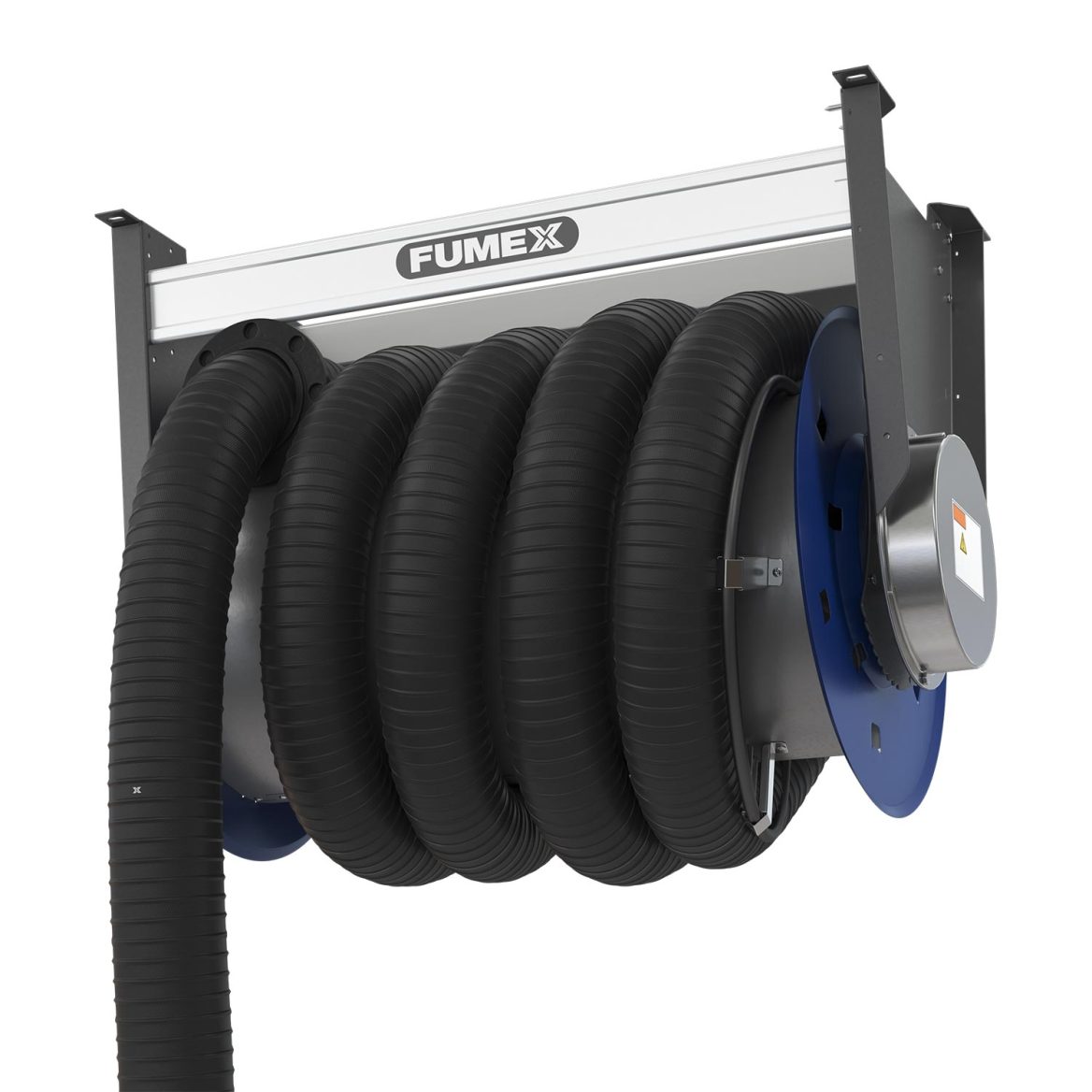 Hose reels for vehicle workshops. Hose reel ASE / ASEM is a practical solution when working with stationary vehicles where you want to create a free work surface when the extractor is not used. The hose reels are available in four different models: