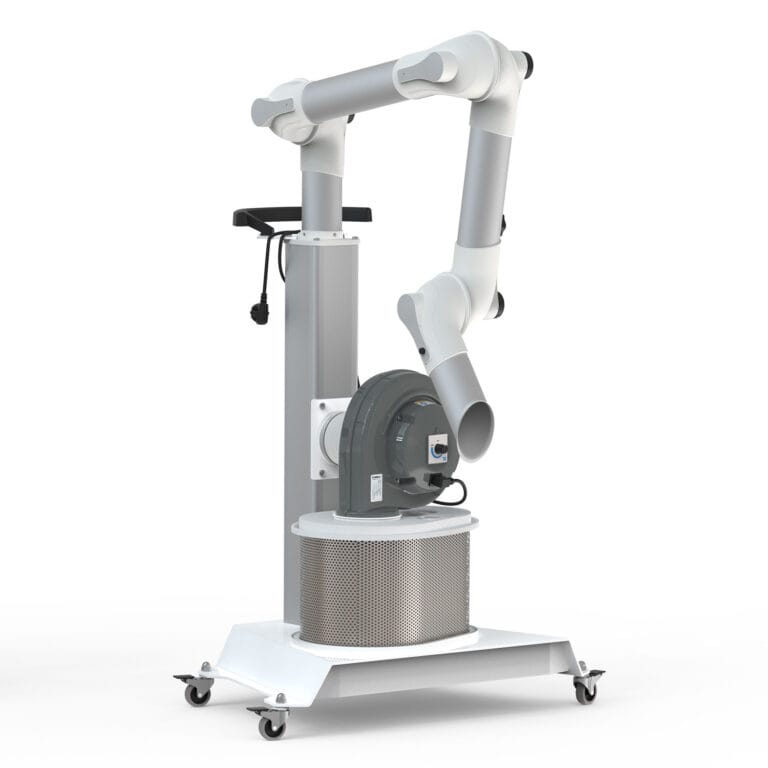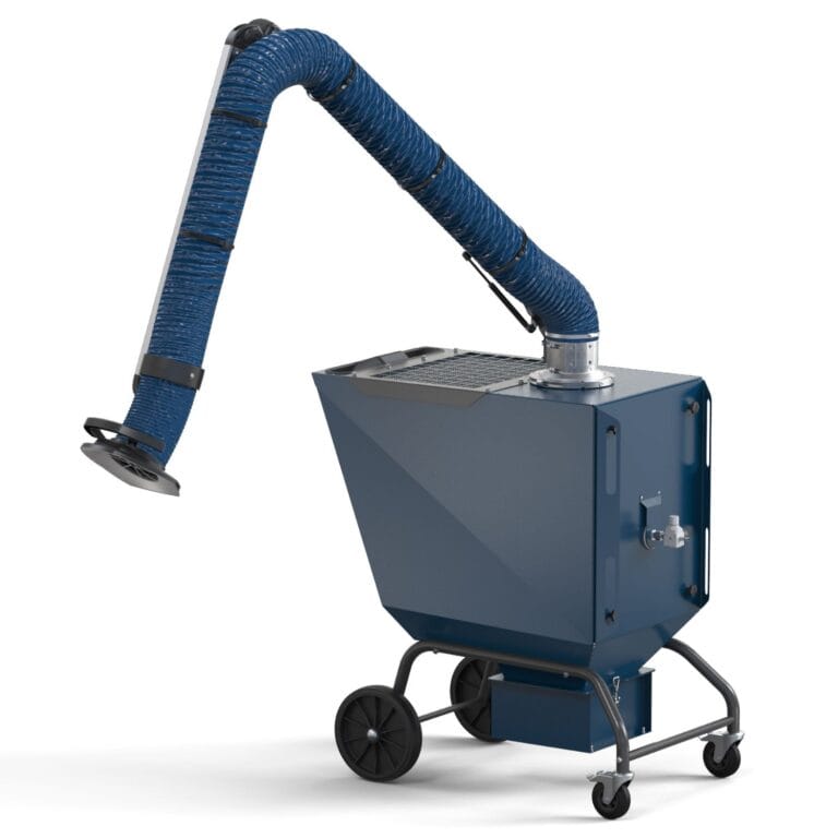 Mobile filter for welding fumes and lighter dust at temporary workplaces.